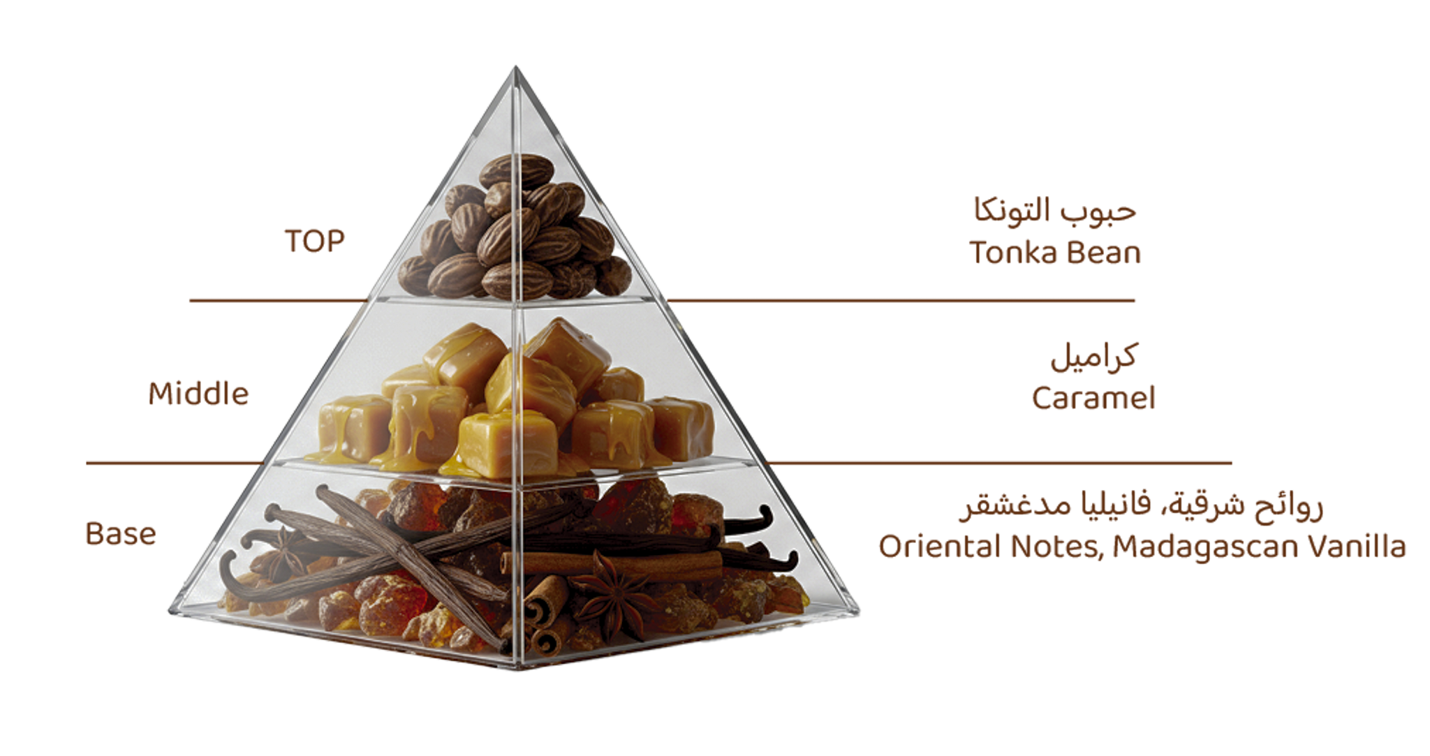 - اريج دافئ من حبوب التونكا والكراميل الشهي الممزوجة برائحة فانيليا مدغشقر الحلوة والناعمة